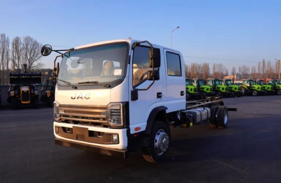 Це середньотоннажна модель JAC N120 із дворядною кабіною. Популярна машина отримала ще більш ширшу сферу застосування, оскільки тепер здатна перевозити ще й робочу бригаду з шести осіб, не враховуючи водія.