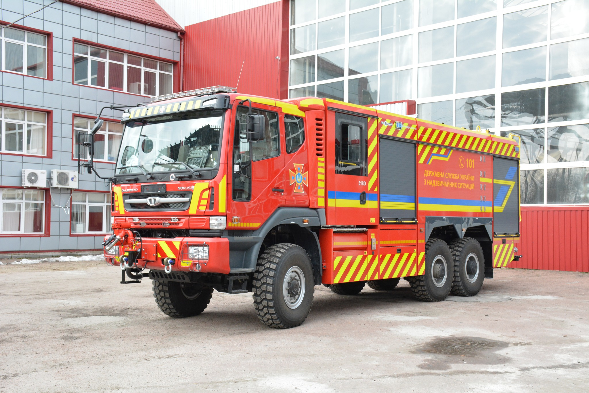 Новинка базується на всюдихідному шасі Daewoo CM6C7 6WD Novus 6x6.1. На відміну від анонсованої у 2023 році автоцистерни на базі шасі Ford ця автоцистерна має кабіну для особового виробництва безпосередньо «Пожмашина».