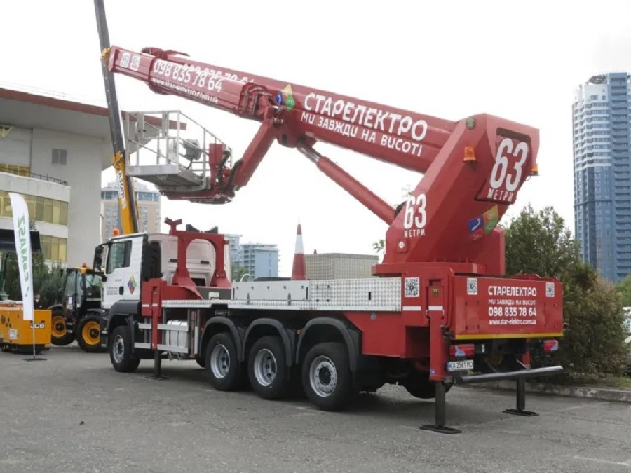Вона забезпечує максимальну робочу висоту 63 м та горизонтальний виліт до 40 м. Чималенька корзина – завдовжки 3,82 м та завширшки 0,97 м – розрахована на вантажопідйомність до 600 кг.