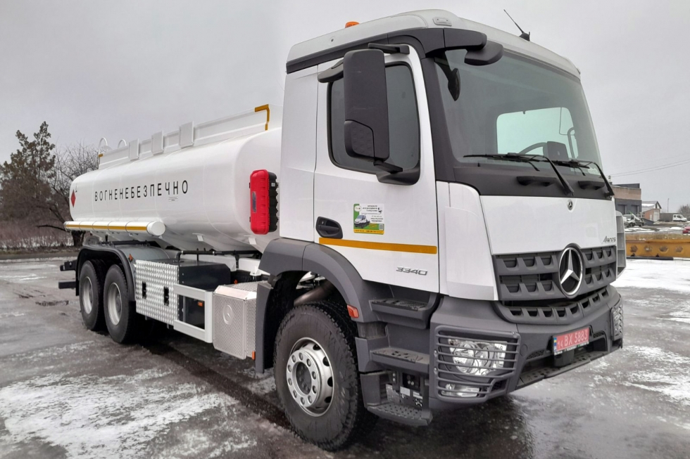 Як повідомляє SpecMachinery.com.ua, для виготовлення фірмового паливозаправника «Техкомплект» вперше задіяно вантажне шасі Mercedes Benz Arocs 5 3340. Шасі надане замовником бензовоза.