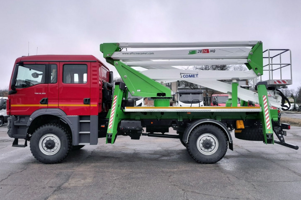 Автогідропідіймач COMET 28 | 2 | 14 HQ на MAN TGM 18.320 CREW CAB 4х4 - комбінований автогідропідіймач виробництва Італії, що встановлюється на Заводі спецтехніки «Техкомплект» на вантажівках з мінімальною масою від 6 т.