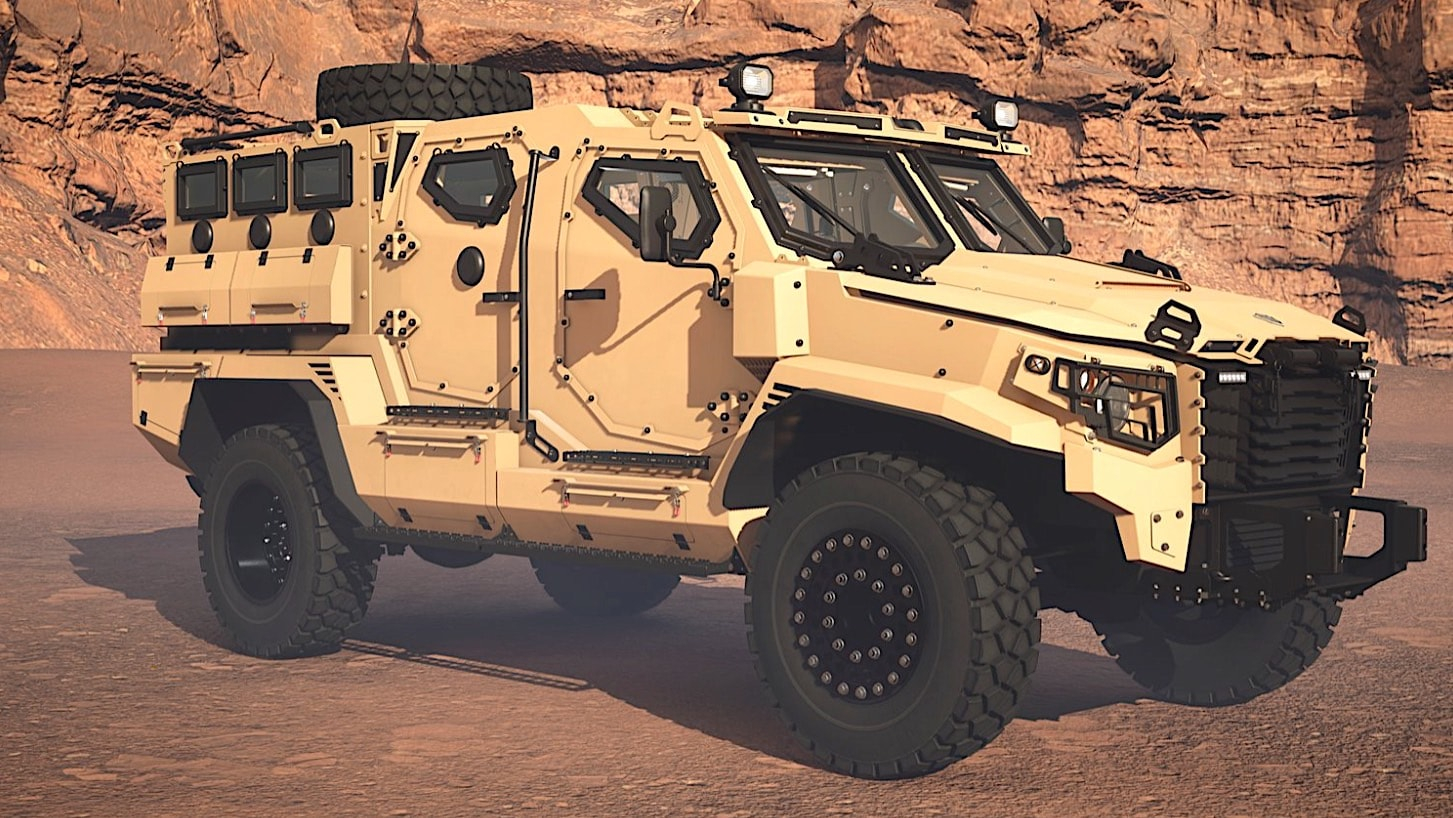 Попри свою видатну зовнішність, ця вантажівка стандартно оснащується бронею B6 з балістичної сталі, бойовими замками, 3-дюймовим балістичним склом для вікон, дев'ятьма броньованими портами для стрільби та люком на даху.
