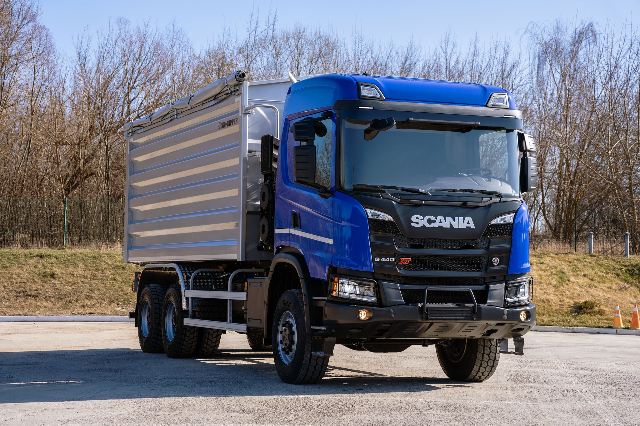 Самоскид Scania G440 6х6 із кузовом KH Kipper буде активно використовуватися для польових робіт: завантаження з-під комбайну зерновими культурами та силосом.