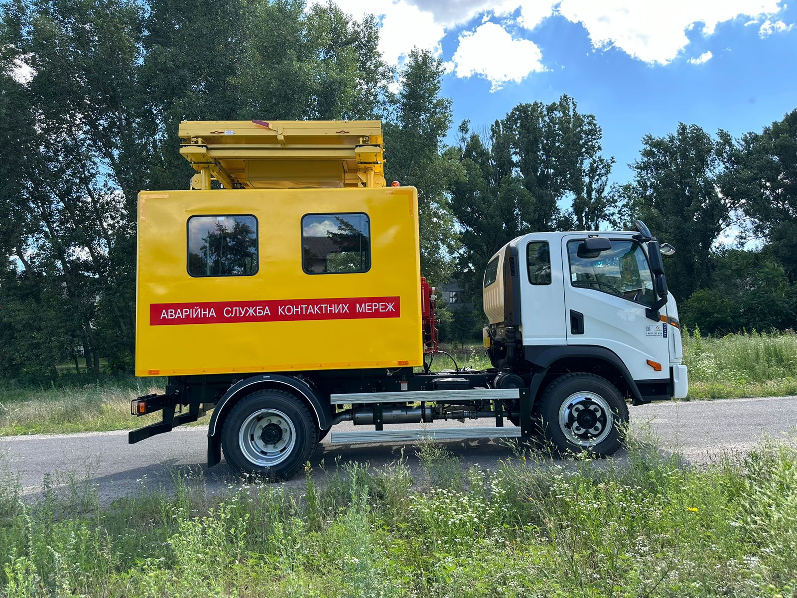 Новий автомобіль оснащений підіймачем на даху, що дозволяє ремонтним бригадам досягати необхідної висоти для проведення робіт на контактних мережах.