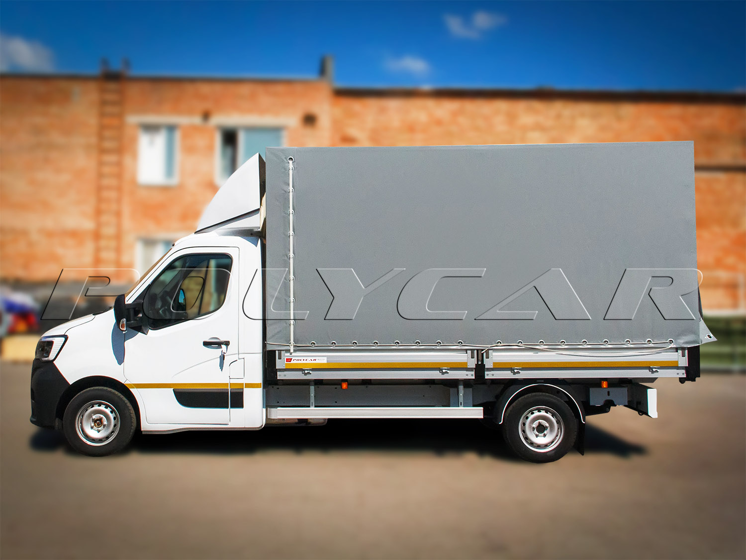 Усе це замовнику було запропоновано в процесі обговорення технічного боку проєкту, в результаті чого клієнт вибрав шасі Renault Master з довжиною колісної бази L3, ідеального варіанту для монтажу полегшеної бортової платформи з каркас тентом.