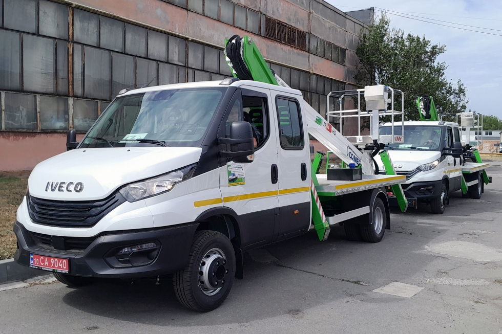 Енергетики в Запорізькій області отримали ще два автогідропідіймачі з крупної партії на замовлення - модель COMET 19 | 2 | 14 HQ на IVECO Daily 60с16D, що має робочу висоту 18 м та кабіну базової вантажівки, яка перевезе бригаду з 6 працівників (без урахування водія).